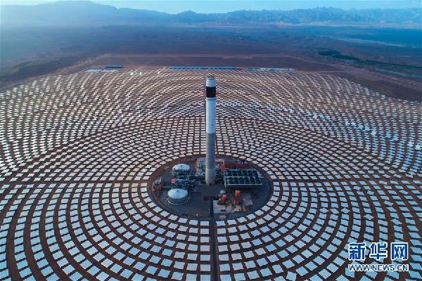 這是2018年6月7日在摩洛哥瓦爾扎扎特拍攝的努奧光熱電站項目三期工程(航拍照片)。從2015年起,中國電建集團(tuán)下屬的山東電建三公司在瓦爾扎扎特承建努奧光熱電站項目二期和三期工程。努奧光熱電站項目是目前全球規(guī)模最大的光熱電站項目。二期工程槽式光熱電站現(xiàn)已進(jìn)入商業(yè)運行,三期塔式光熱電站也于近日順利實現(xiàn)首次并網(wǎng)目標(biāo)。待項目完全建成后,努奧光熱電站將為超過100萬的摩洛哥家庭提供清潔能源,還可以把富余的電能出口到歐洲。 新華社發(fā)/山東電建三公司供圖