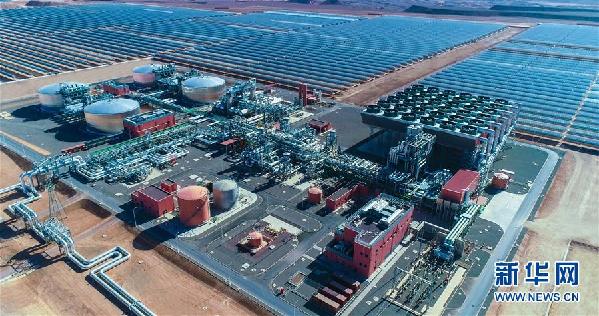 這是2018年6月7日在摩洛哥瓦爾扎扎特拍攝的努奧光熱電站項目二期工程(航拍照片)。從2015年起,中國電建集團(tuán)下屬的山東電建三公司在瓦爾扎扎特承建努奧光熱電站項目二期和三期工程。努奧光熱電站項目是目前全球規(guī)模最大的光熱電站項目。二期工程槽式光熱電站現(xiàn)已進(jìn)入商業(yè)運行,三期塔式光熱電站也于近日順利實現(xiàn)首次并網(wǎng)目標(biāo)。待項目完全建成后,努奧光熱電站將為超過100萬的摩洛哥家庭提供清潔能源,還可以把富余的電能出口到歐洲。 新華社發(fā)/山東電建三公司供圖