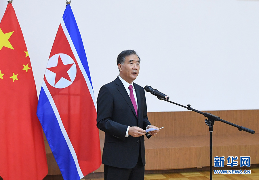 9月6日,中共中央政治局常委、全國政協(xié)主席汪洋在北京出席朝鮮駐華使館國慶70周年招待會(huì)并致辭。 新華社記者 申宏 攝