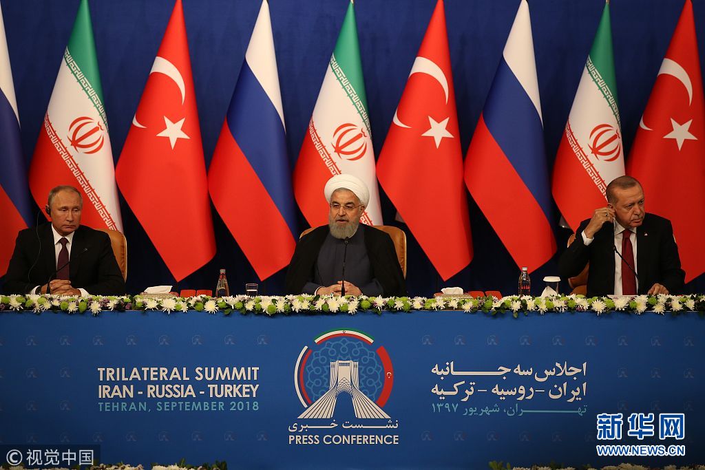 當?shù)貢r間2018年9月7日,伊朗德黑蘭,當日,俄羅斯、土耳其和伊朗三國首腦齊聚伊朗首都德黑蘭舉行峰會,討論敘利亞局勢。(圖片來源:視覺中國)