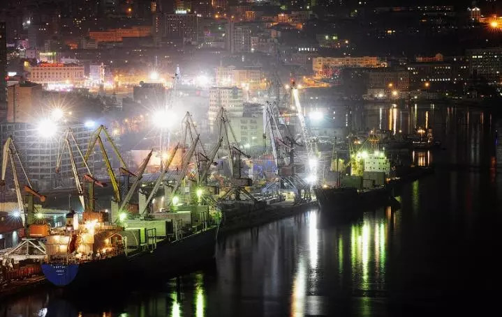夜晚的符拉迪沃斯托克商港(新華社記者吳剛攝)