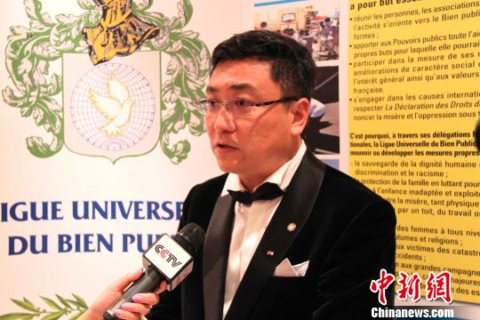 9月21日晚,中國(guó)工筆畫(huà)家崔景哲在巴黎榮獲全球公益聯(lián)盟文學(xué)(藝術(shù))金質(zhì)勛章,也是此次頒獎(jiǎng)典禮所有獲獎(jiǎng)?wù)咧形ㄒ灰晃恢袊?guó)人。圖為崔景哲接受媒體采訪(fǎng)。李洋 攝