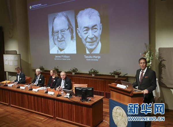 新華社斯德哥爾摩10月1日電(記者張家偉 付一鳴)瑞典卡羅琳醫(yī)學(xué)院10月1日宣布,將2018年諾貝爾生理學(xué)或醫(yī)學(xué)獎授予美國科學(xué)家詹姆斯·艾利森和日本科學(xué)家本庶佑,以表彰他們在癌癥免疫治療方面所作出的貢獻。
