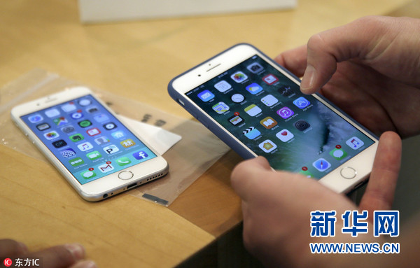 美國芝加哥,顧客正在體驗(yàn)全新蘋果智能手機(jī)。
