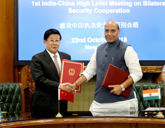 10月22日,中國與印度首次執(zhí)法安全高級別會晤在新德里舉行。國務委員、公安部部長趙克志與印度內政部部長辛格共同簽署了《中華人民共和國公安部與印度共和國內政部合作協(xié)議》。