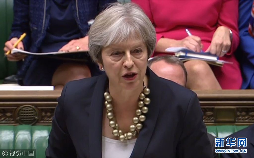當?shù)貢r間2018年10月22日,英國倫敦,英國首相特雷莎·梅在下議院向國會議員發(fā)表聲明,尋求脫歐戰(zhàn)略支持。特雷莎·梅稱盡管她再次拒絕了歐盟關(guān)于愛爾蘭邊界問題的提議,但堅信與歐盟的脫歐協(xié)議談判已經(jīng)接近尾聲。(視頻截圖)(圖片來源:視覺中國)