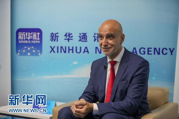 圖為達能公司高級副總裁帕斯卡爾·德彼得里尼接受新華網(wǎng)獨家專訪。新華網(wǎng) 郭小天攝