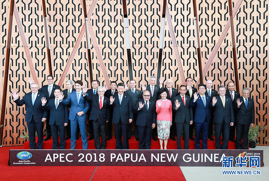 11月17日,國家主席習(xí)近平應(yīng)邀出席在巴布亞新幾內(nèi)亞莫爾茲比港舉行的亞太經(jīng)合組織工商領(lǐng)導(dǎo)人峰會(huì)并發(fā)表題為《同舟共濟(jì)創(chuàng)造美好未來》的主旨演講。同日,習(xí)近平還出席了亞太經(jīng)合組織領(lǐng)導(dǎo)人同工商咨詢理事會(huì)代表對(duì)話會(huì)。對(duì)話會(huì)前,習(xí)近平同其他亞太經(jīng)合組織成員經(jīng)濟(jì)體領(lǐng)導(dǎo)人、代表合影。 新華社記者 龐興雷 攝