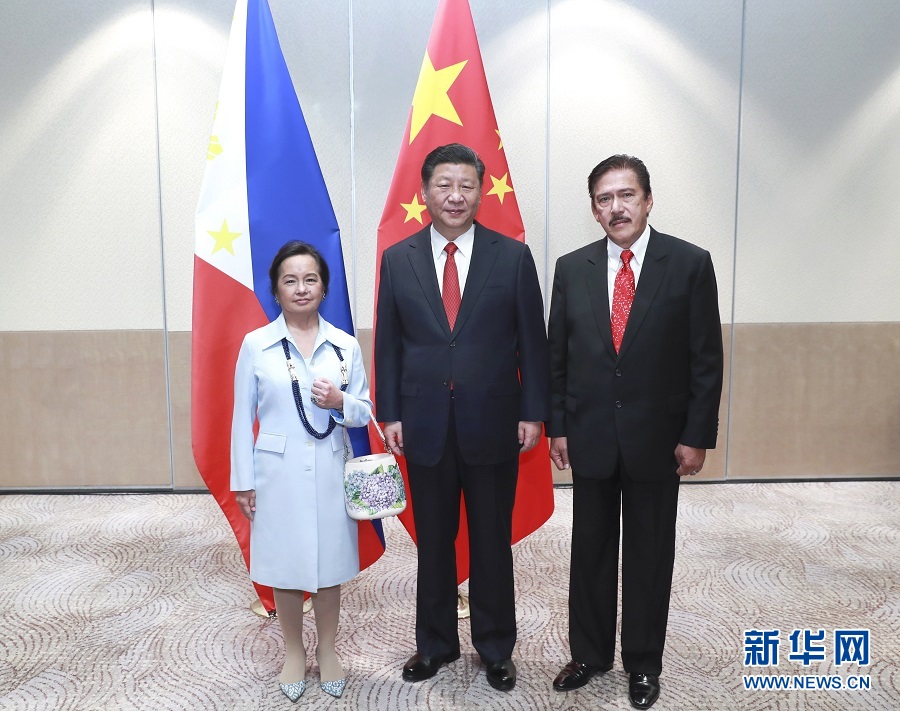 11月21日,國(guó)家主席習(xí)近平在馬尼拉會(huì)見(jiàn)菲律賓眾議長(zhǎng)阿羅約和參議長(zhǎng)索托。 新華社記者 龐興雷 攝