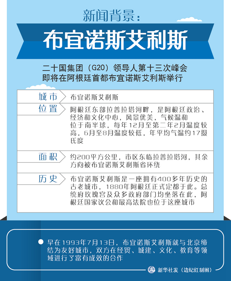新華社布宜諾斯艾利斯11月28日電 新聞背景:G20領(lǐng)導(dǎo)人第十三次峰會(huì)舉辦地——布宜諾斯艾利斯
