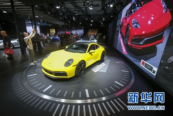 11月30日,在美國洛杉磯,人們?cè)谲囌股蠀⒂^保時(shí)捷911卡雷拉4S。 新華社發(fā)(趙漢榮攝)