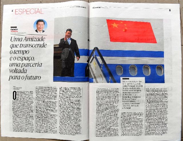 在對葡萄牙進行國事訪問前夕,習(xí)近平主席在葡萄牙《新聞日報》發(fā)表題為《跨越時空的友誼 面向未來的伙伴》的署名文章。(新華社記者章亞東、孫奕攝)