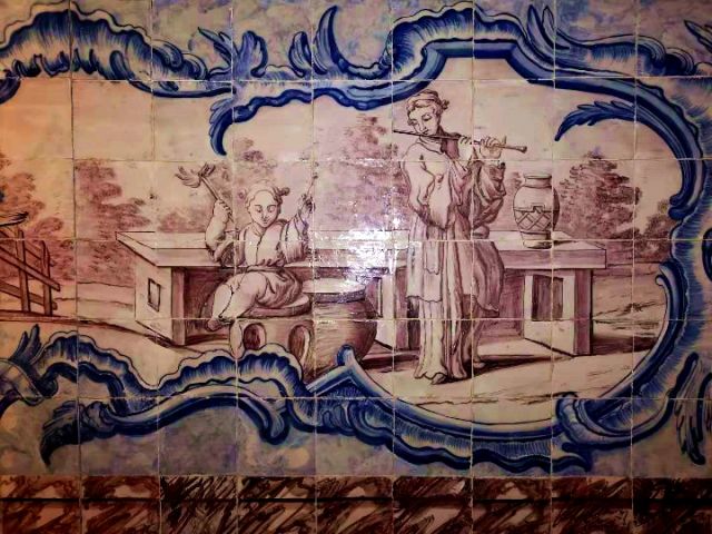 葡萄牙瓷磚畫展現(xiàn)的中國人生活場景。(新華社記者錢彤?dāng)z)