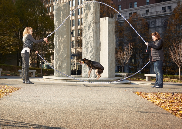 小狗Geronimo也是被Samantha救助并領(lǐng)養(yǎng)的狗。Geronimo是一只邊境牧羊犬和卡爾比犬的混種母犬,性格活潑,是“1分鐘一只狗完成最多的交互跳繩”的世界紀(jì)錄保持者。經(jīng)過六個星期的訓(xùn)練,Samantha發(fā)現(xiàn)Geronimo變得難以配合訓(xùn)練,于是她想出增加一根跳繩的方法。這使她很快就發(fā)現(xiàn)Geronimo簡直是一個交互跳繩天才!