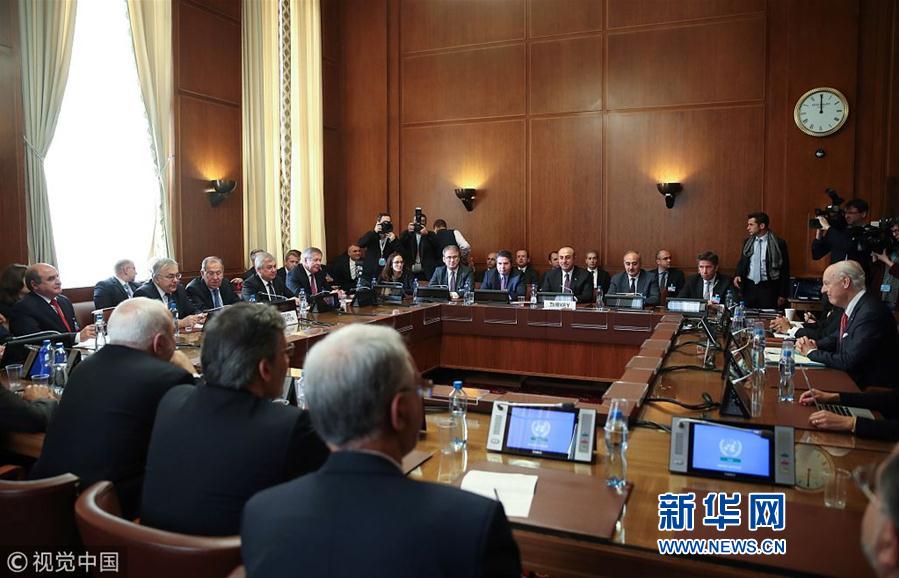 當(dāng)?shù)貢r(shí)間2018年12月18日,瑞士日內(nèi)瓦,俄羅斯、土耳其、伊朗三國外長與聯(lián)合國敘利亞問題特使一同出席會(huì)議,就成立敘利亞憲法委員會(huì)進(jìn)行討論。(圖片來源:視覺中國)