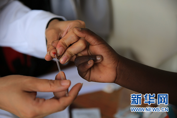這張2018年12月8日拍攝的照片顯示,在馬拉維南部布蘭太爾市卡迪迪村衛(wèi)生院,第六批中國(guó)援馬拉維醫(yī)療隊(duì)醫(yī)生在義診活動(dòng)中為當(dāng)?shù)鼐用駲z測(cè)瘧疾。新華社發(fā)(樊江波 攝)