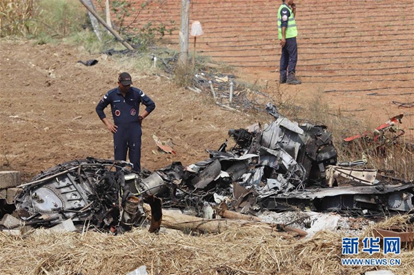 2月19日,在印度班加羅爾,軍人在墜機現場查看。新華社發(fā)