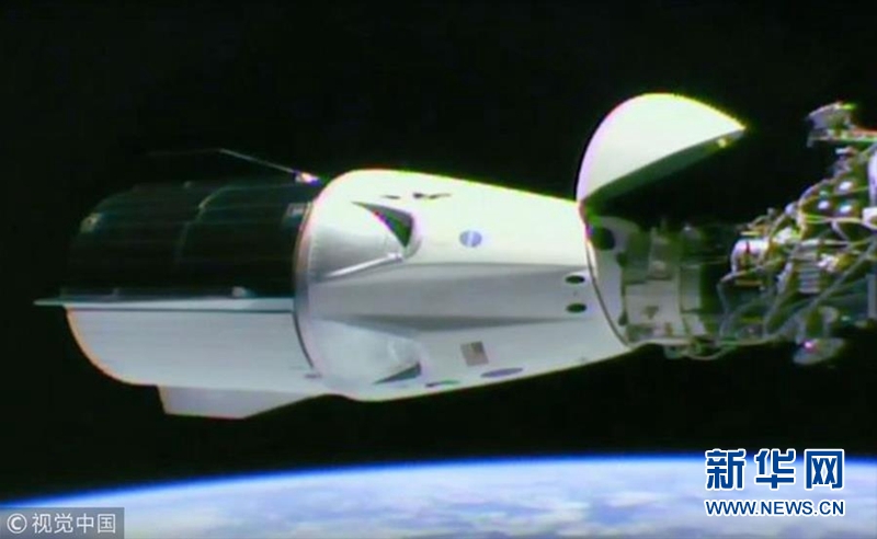 2019年3月3日,美國宇航局在任務現(xiàn)場直播視頻宣布,SpaceX“龍”飛船成功與國際空間站進行對接。3月2日,載人“龍”飛船搭乘“獵鷹9”火箭在美國佛羅里達州肯尼迪航天中心39A發(fā)射臺升空。飛船里有個假人模型,用來記錄真實宇航員承受的各項數(shù)據(jù)。(視頻截圖)(圖片來源:視覺中國)