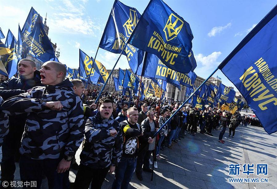 當(dāng)?shù)貢r間2019年3月9日,烏克蘭基輔,烏克蘭民族主義政黨的激進分子集會要求調(diào)查烏克蘭武裝部隊官員的腐敗問題,與警方發(fā)生激烈沖突。(圖片來源:視覺中國)