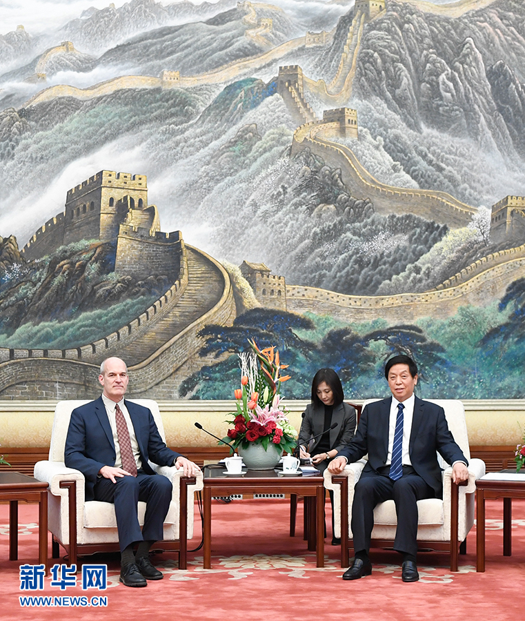 3月22日,全國人大常委會委員長栗戰(zhàn)書在北京人民大會堂會見美國眾議院“美中工作小組”代表團(tuán)。 新華社記者申宏攝
