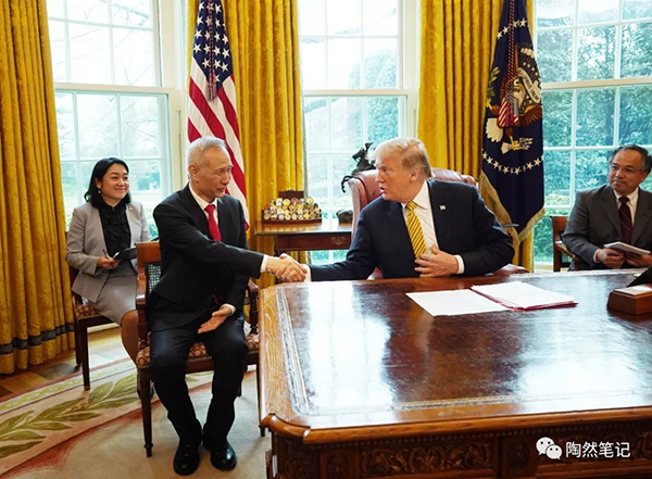 劉鶴副總理的位置,從特朗普的對面,安排到了特朗普的右側(cè)。