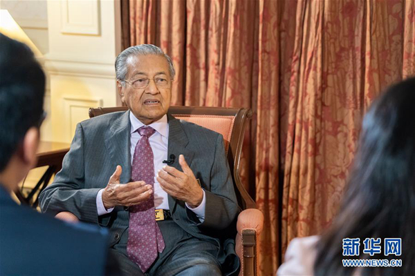 4月8日,馬來西亞總理馬哈蒂爾在普特拉賈亞接受中國媒體聯(lián)合采訪。新華社記者 朱煒 攝