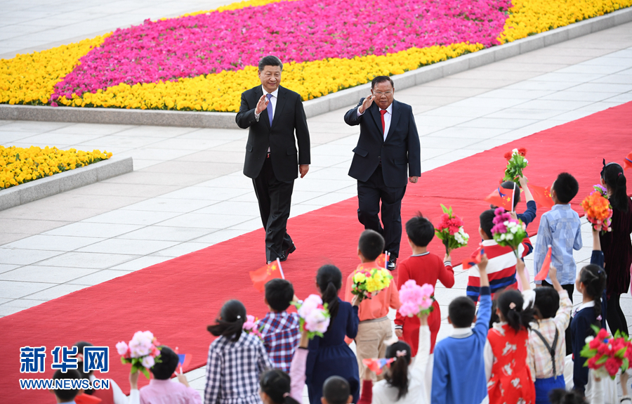4月30日,中共中央總書記、國(guó)家主席習(xí)近平在北京同老撾人民革命黨中央總書記、國(guó)家主席本揚(yáng)舉行會(huì)談。這是會(huì)談前,習(xí)近平在人民大會(huì)堂東門外廣場(chǎng)為本揚(yáng)舉行歡迎儀式。 新華社記者 劉衛(wèi)兵 攝