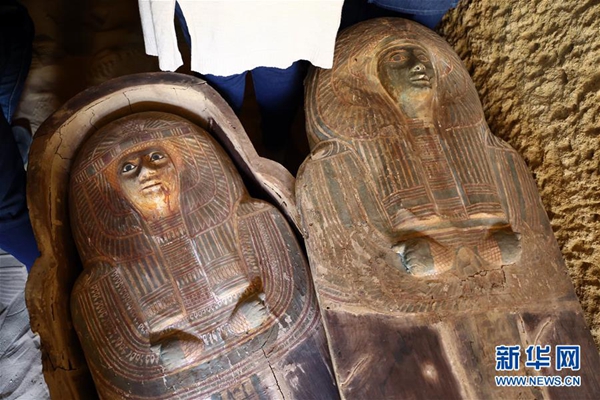 吉薩高地總干事阿什拉夫·穆希介紹說,該墓地在古埃及后期(公元前712年至前323年)被多次重復(fù)使用,考古隊(duì)在該墓地中發(fā)掘出多座古埃及后期的木質(zhì)棺槨和一些喪葬用木質(zhì)及石質(zhì)面具,很多還保存有顏色。