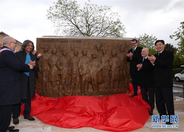 5月4日,為紀(jì)念留法勤工儉學(xué)運動100周年,大型雕塑《百年豐碑》在法國蒙達(dá)爾紀(jì)市鄧小平廣場落成。這座高2.9米、寬4.65米的雕塑,以浮雕形式,呈現(xiàn)十多位留法勤工儉學(xué)代表人物。
