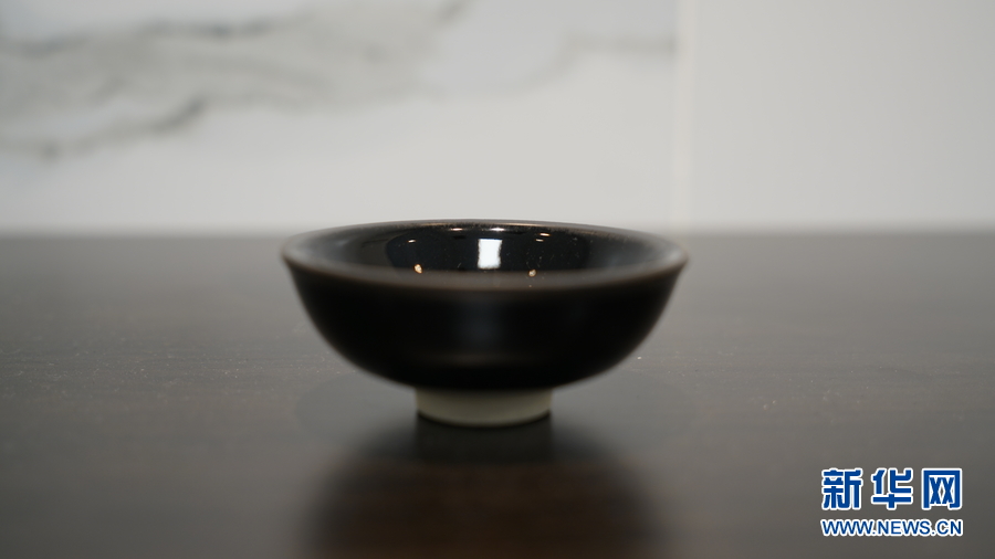 2019中日陶瓷名家精品聯(lián)展上展出的“烏金”(屬于建盞的一種)。梁賽玉 攝