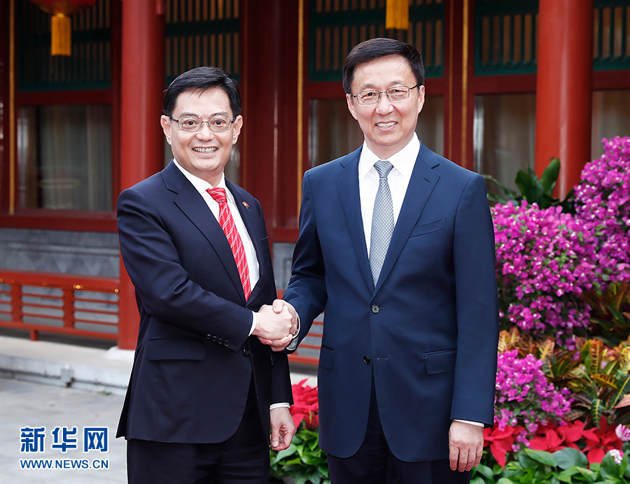 韓正表示,中方高度重視中新關系,明年兩國將迎來建交30周年,雙方要以此為契機,推動中新關系在新時期實現(xiàn)更大發(fā)展。中方愿同新方一道,落實好兩國領導人共識,繼續(xù)用好合作機制平臺,推動各領域務實合作取得更大發(fā)展。雙方要保持密切溝通,高質(zhì)量共建“一帶一路”,建設好“陸海新通道”,深化第三方市場合作,開展粵港澳大灣區(qū)建設合作,發(fā)揮示范和帶動效應,推動地區(qū)和沿線國家共同發(fā)展。