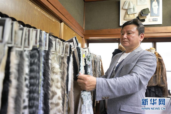 這是5月17日在日本和歌山縣,岡田織物現(xiàn)任社長(zhǎng)岡田次弘挑選人造毛皮產(chǎn)品。新華社記者 杜瀟逸 攝