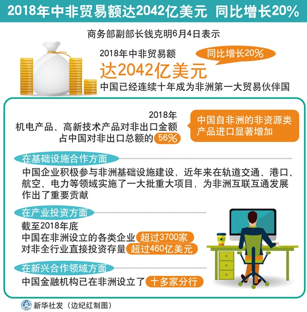 新華社北京6月4日電(記者申鋮、于佳欣)商務(wù)部副部長錢克明4日表示,2018年中非貿(mào)易額達(dá)到2042億美元,同比增長20%,中國已經(jīng)連續(xù)十年成為非洲第一大貿(mào)易伙伴國。
