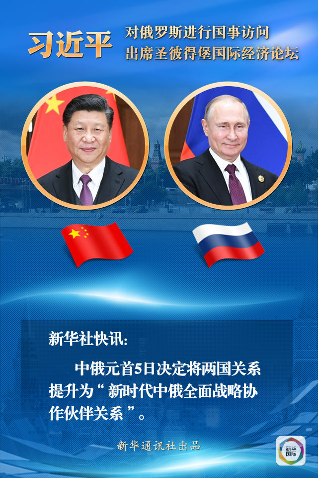 新華社快訊:中俄元首5日決定將兩國關(guān)系提升為“新時代中俄全面戰(zhàn)略協(xié)作伙伴關(guān)系”。
