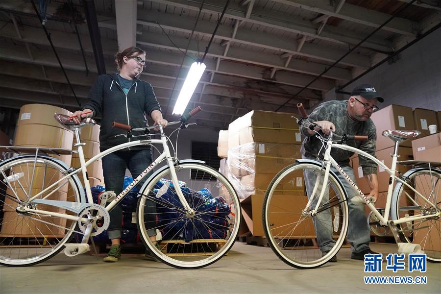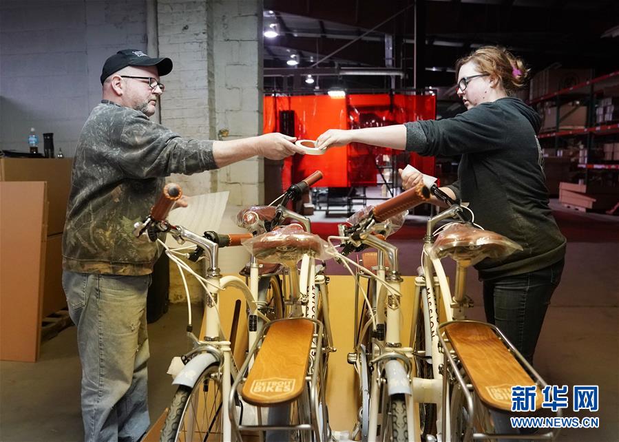 2019年5月21日,工作人員在美國密歇根州底特律市一家自行車廠工作。新華社記者 劉杰 攝