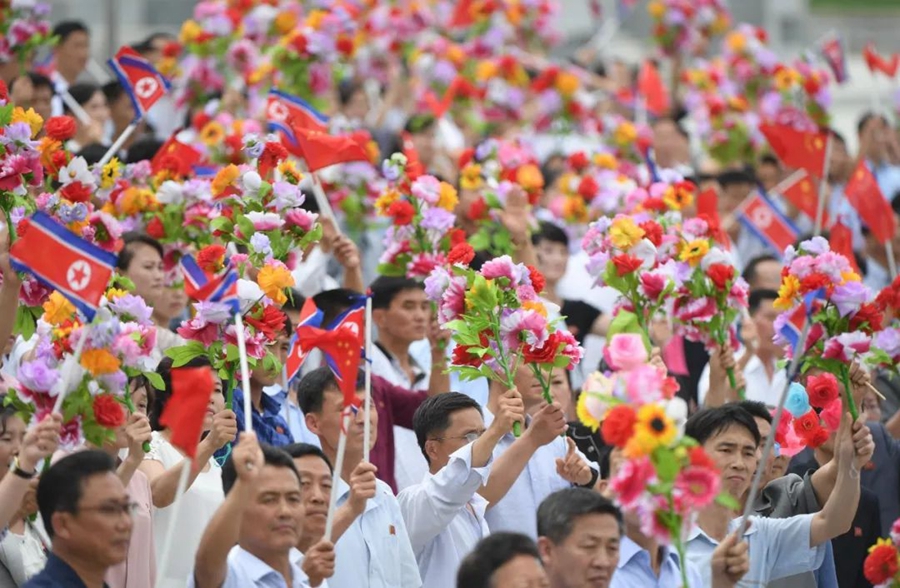 整座城市沉浸在熱情友好的氣氛之中。朝鮮最高領導人金正恩親赴機場迎接,平壤數(shù)十萬群眾沿途夾道歡迎,首次為外國領導人舉行致敬活動,習總書記在盛情之中正式開啟平壤時間。