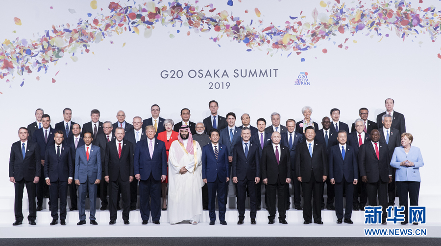 6月28日,二十國集團(tuán)領(lǐng)導(dǎo)人第十四次峰會(huì)在日本大阪舉行。國家主席習(xí)近平出席并發(fā)表題為《攜手共進(jìn),合力打造高質(zhì)量世界經(jīng)濟(jì)》的重要講話。這是習(xí)近平同其他與會(huì)領(lǐng)導(dǎo)人合影。新華社記者 黃敬文 攝