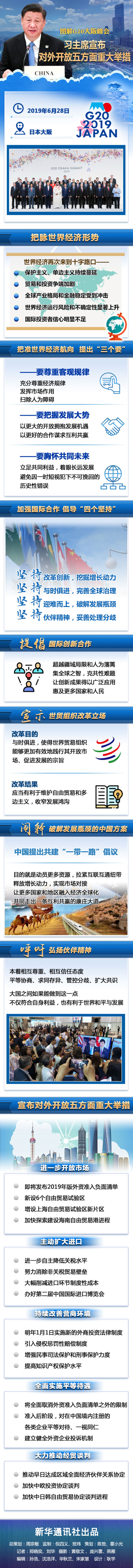 6月28日,習近平主席在日本大阪舉行的二十國集團領導人峰會上發(fā)表題為《攜手共進,合力打造高質量世界經濟》的重要講話,宣布對外開放五方面重大舉措。