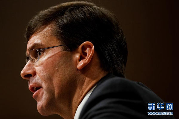 這是7月16日在美國(guó)華盛頓國(guó)會(huì)拍攝的馬克·埃斯珀參加參議院聽(tīng)證會(huì)的資料照片。新華社發(fā)(沈霆 攝)