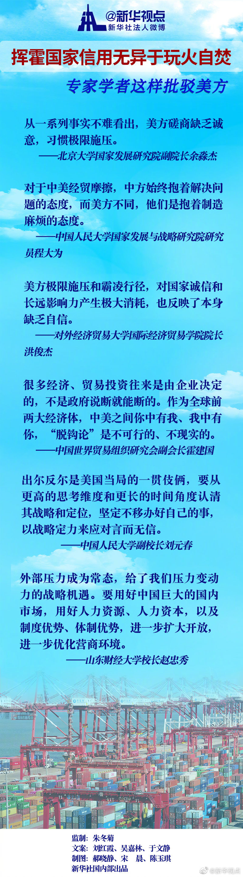 中國人民大學(xué)副校長劉元春認(rèn)為,出爾反爾是美國當(dāng)局的一貫伎倆,要從更高的思考維度和更長的時間角度認(rèn)清其戰(zhàn)略和定位,堅定不移辦好自己的事,以戰(zhàn)略定力來應(yīng)對言而無信。