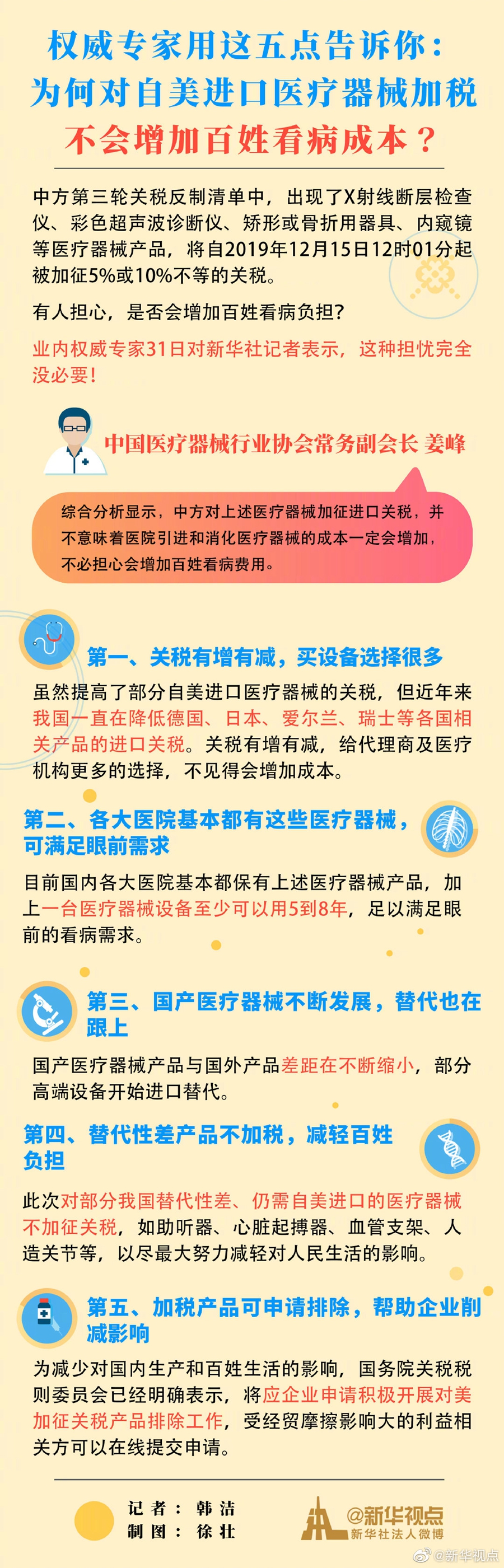 對此,中國醫(yī)療器械行業(yè)協(xié)會常務副會長姜峰31日接受記者采訪時說,綜合分析顯示,中方對上述醫(yī)療器械加征進口關(guān)稅,并不意味著醫(yī)院引進和消化醫(yī)療器械的成本一定會增加,不必擔心會增加百姓看病費用。