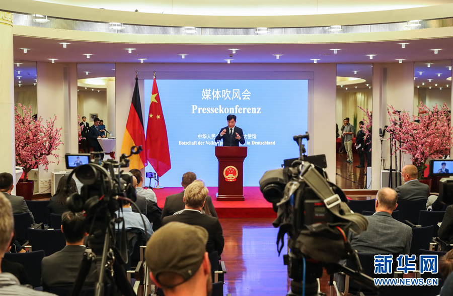 9月11日,在德國首都柏林的中國駐德國大使館,中國駐德國大使吳懇出席中外記者會(huì)。中國駐德國大使吳懇11日譴責(zé)一些德國政客把香港分裂分子黃之鋒奉為座上賓,奉勸德國某些政客停止干涉香港事務(wù)。 新華社記者單宇琦攝