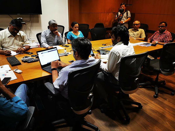 《印度教徒報(bào)》各個(gè)版面負(fù)責(zé)人于晚間召開(kāi)碰頭會(huì),商量確定內(nèi)容和版面設(shè)計(jì)。新華社記者趙博攝