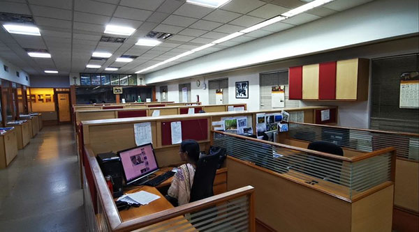 文卡特斯瓦倫負(fù)責(zé)《印度教徒報(bào)》的頭條版樣設(shè)計(jì)。他的辦公室門(mén)口,整整齊齊地碼放著其他報(bào)紙的刊樣。
