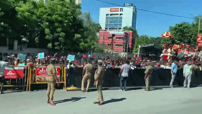 習(xí)主席的車(chē)隊(duì)駛離機(jī)場(chǎng)前往市區(qū)沿途,眾多當(dāng)?shù)貙W(xué)生和群眾簇?fù)碓诮值纼膳裕瑩]舞中印兩國(guó)國(guó)旗,手舉習(xí)主席和莫迪總理照片,歡呼“中印友好”,表達(dá)對(duì)習(xí)主席的熱烈歡迎。