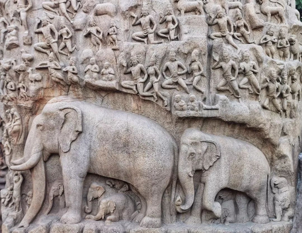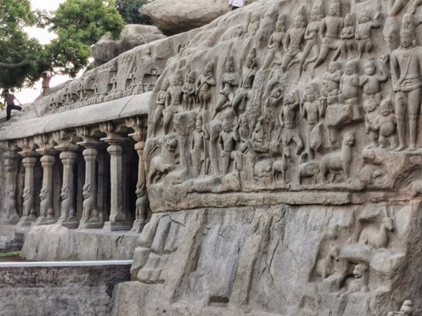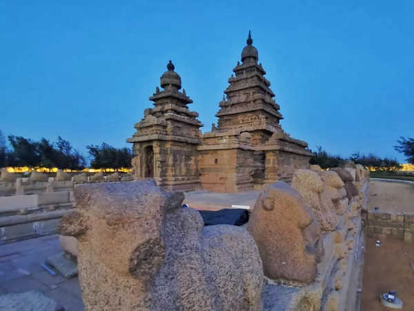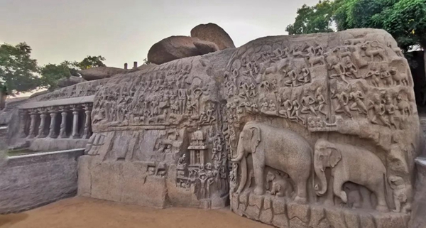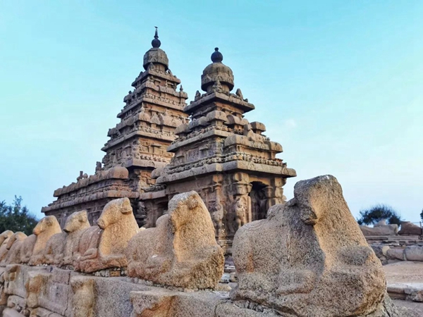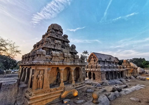馬哈巴利普拉姆古寺廟建于公元7至8世紀(jì),由阿周那石雕、五戰(zhàn)車(chē)神廟、海岸神廟等古跡組成。