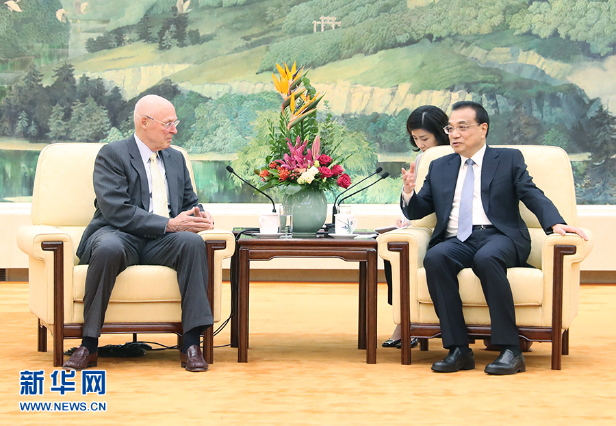 新華社北京10月23日電(記者鄭明達)國務(wù)院總理李克強23日下午在人民大會堂會見美國前財政部長保爾森。