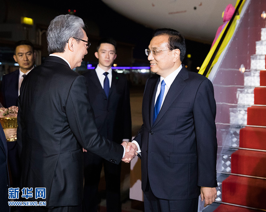 當(dāng)?shù)貢r(shí)間11月2日晚,應(yīng)泰王國(guó)總理巴育邀請(qǐng),國(guó)務(wù)院總理李克強(qiáng)乘專(zhuān)機(jī)抵達(dá)曼谷素萬(wàn)那普機(jī)場(chǎng),將出席第22次中國(guó)-東盟(10+1)領(lǐng)導(dǎo)人會(huì)議、第22次東盟與中日韓(10+3)領(lǐng)導(dǎo)人會(huì)議和第14屆東亞峰會(huì)(EAS),并對(duì)泰國(guó)進(jìn)行正式訪(fǎng)問(wèn)。泰國(guó)副總理頌奇率政府高級(jí)官員到機(jī)場(chǎng)迎接。 新華社記者 黃敬文 攝