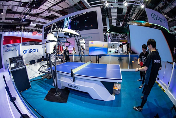 在裝備展區(qū),乒乓球機器人較受關注,不僅互動性強,而且也昭示著人工智能的發(fā)展。新華網(wǎng)吳愷 攝