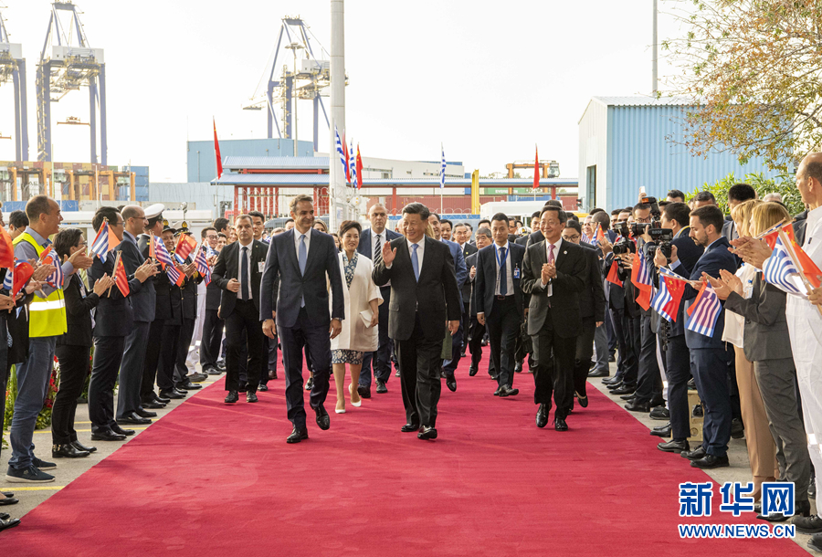 新華社雅典11月11日電(記者霍小光 駱珺 郝薇薇)當(dāng)?shù)貢r(shí)間11月11日,國家主席習(xí)近平和夫人彭麗媛在希臘總理米佐塔基斯夫婦陪同下,共同參觀中遠(yuǎn)海運(yùn)比雷埃夫斯港項(xiàng)目。